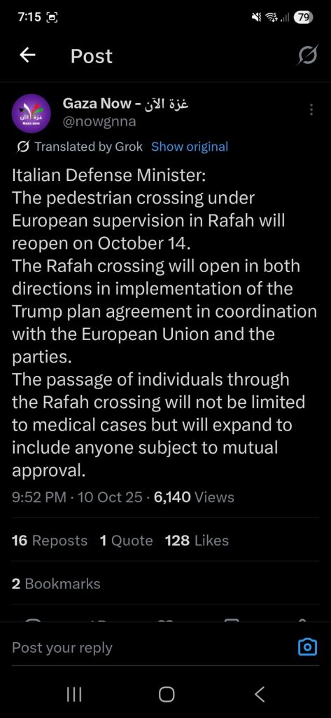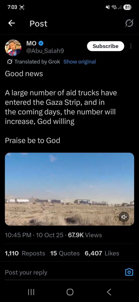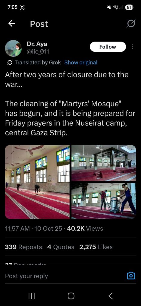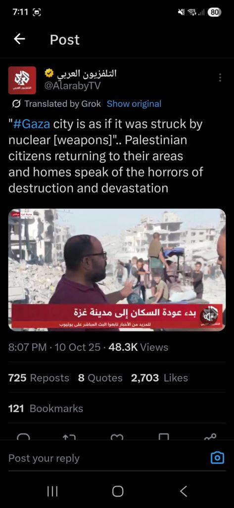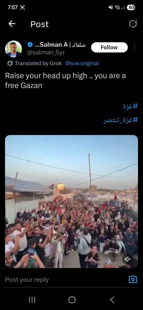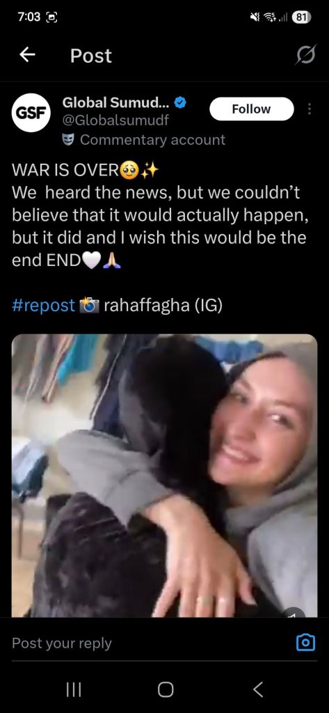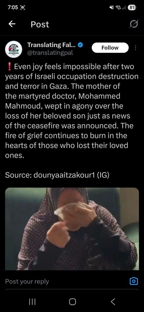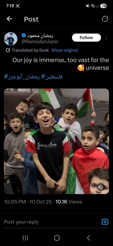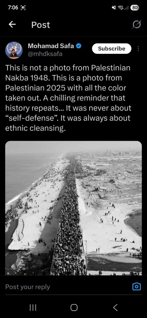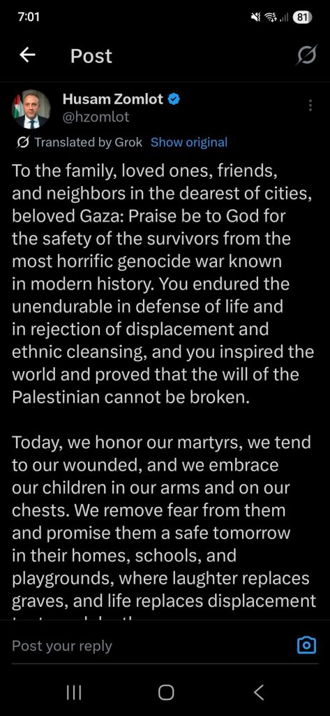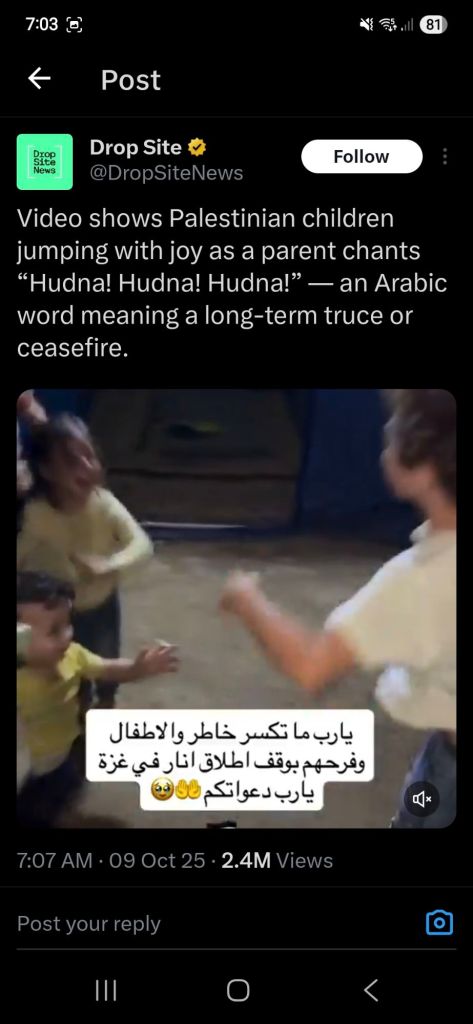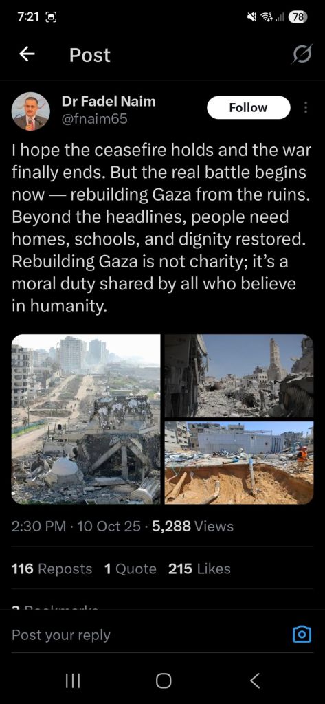 Kata Hati & Jejak Langkah Return, reunite, Gaza! Posted by antonpane on 11 October 202511 October 2025 Tangkapan layar media sosial Return, Reunite, Gaza!. Medsos membuka mata dunia, membuka hati orang-orang berdiri disisi sejarah yang benar Share this: Click to print (Opens in new window) Print Click to email a link to a friend (Opens in new window) Email Click to share on Facebook (Opens in new window) Facebook Click to share on X (Opens in new window) X Click to share on WhatsApp (Opens in new window) WhatsApp Like Loading... Related